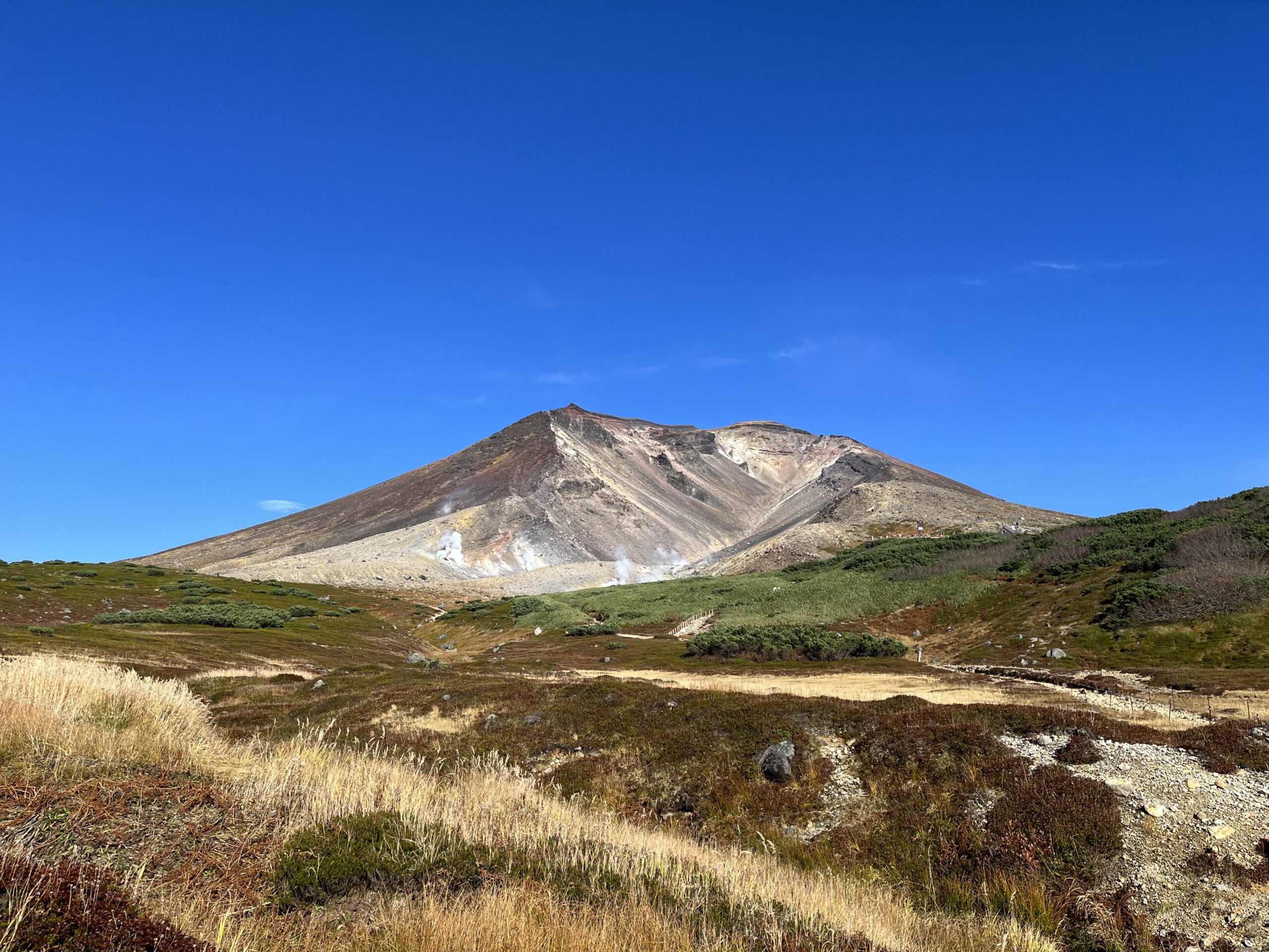 (2022/09 Hokkaido) I climbed Mt. Asahidake (2,291 m), with my friend Wu and some lab members. This mountain is the highest one in Hokkaido. We started at an elevation of 1,600 m, and the round trip took about five hours. We enjoyed Japan’s earliest autumn scenery, as Hokkaido enters autumn earlier than the rest of the country.